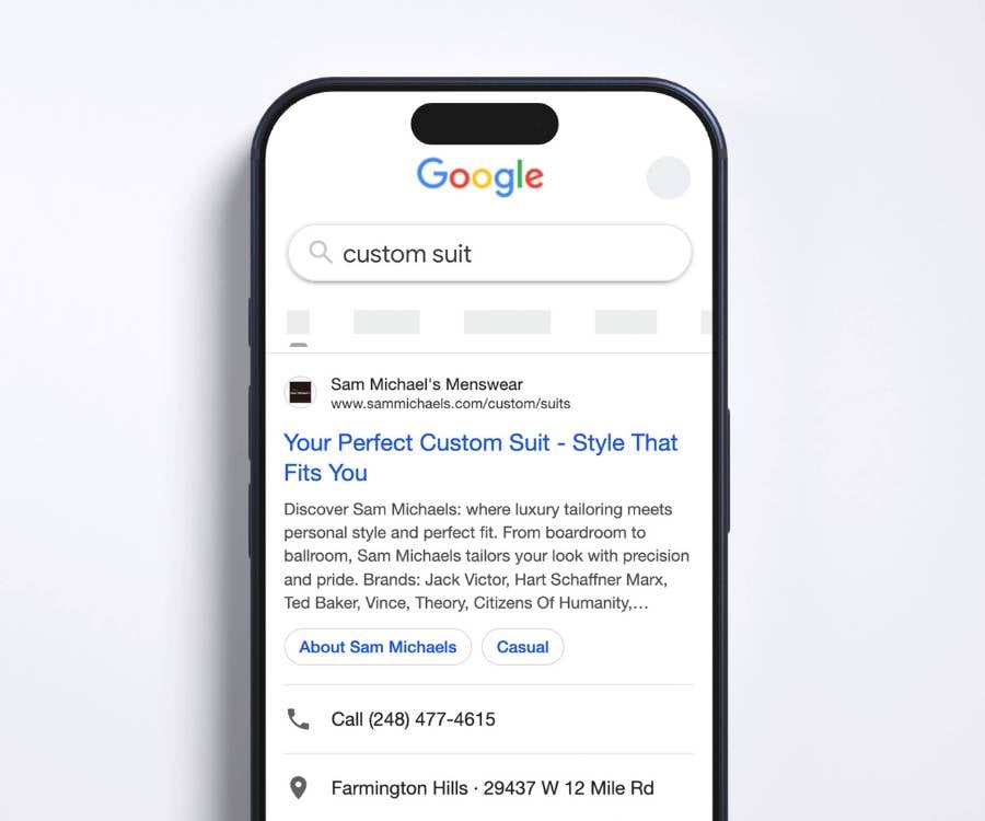 Bold Media is proud to deliver a polished digital presence for Sam Michael’s that reflects their reputation for high-quality menswear, expert tailoring, and personalized service. Our team designed and developed a custom website that presents their offerings in a clean, elevated way while creating a seamless experience for customers. To expand their reach, we implemented a targeted SEO strategy to increase visibility in local and regional searches, connecting them with customers actively seeking formalwear solutions. Google Ads campaigns capture high-intent traffic, while ongoing social media management keeps them visible and engaging, resulting in a well-rounded strategy that drives new business and continued growth.